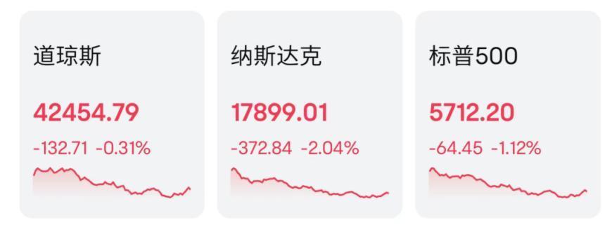 在汽车关税冲击、科技股利空叠加的背景下,美股三大指数全线下挫。截至收盘,道指跌幅为0.31%;纳指跌幅为2.04%;标普500跌幅为1.12%。